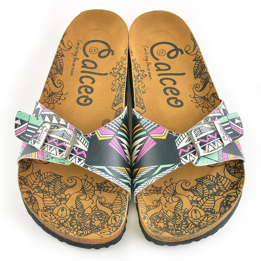 Mint & Pink Geometric Buckle-Accent Sandal CAL903