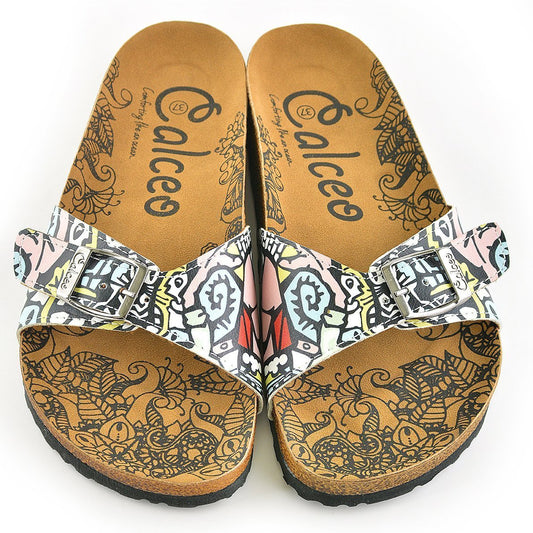 Black & White Lips Buckle-Accent Sandal CAL902