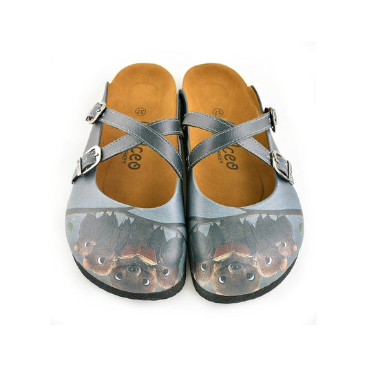 White & Gray Kitty Clogs WCAL330